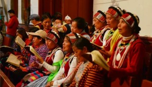 怒江大峡谷少数民族的大小村庄里里外外,随处可见醒目的“十字架”。特别在福贡县周边的山村,傈僳族村民以他们的语言,在基督教堂里咏颂赞美诗,四部和声悠扬悦耳。