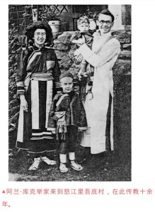 同在腾越宣教的赫伯特·弗拉格(Herbert W. Flagg,汉名范善庆)与妻子米妮(Minnie),最早在怒江山区修建了教堂。随后,有五对来自美国和加拿大的宣教士进入怒江峡谷,在傈僳族聚居的村庄立足布道。民国时期,怒江大峡谷划分为碧江、泸水、福贡、贡山四个县。