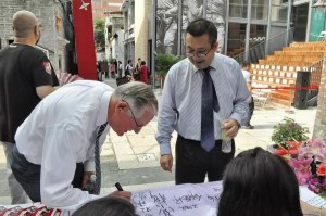 他们特意精选10张展出的图片,翻印成数千套明信卡片在现场义卖。最后,他们将明信片、《国家记忆》图册,《寻找少校》、《发现少校》影碟的项目所得利润,全数委托“关爱抗战老兵网”转捐给健在的老兵。