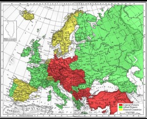 第一次世界大战(简称“一战”,World War I、WWⅠ、Great War),是指同盟国和协约国两个阵营之间长达四年的军事冲突。缘于战事主要在欧洲的东、西两线战场展开,中文词汇通常又以“欧战”形容之。实际上,欧洲之外的诸多国家,也都先后被卷入一战的漩涡。