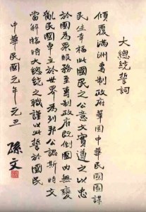 1912年1月1日,孙文(孙中山)在南京宣布成立中华民国,并宣誓就任临时大总统。