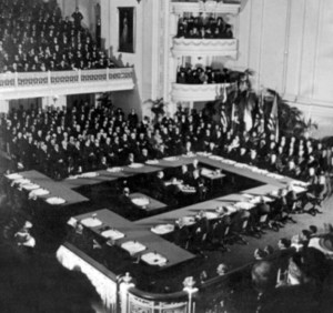史称 “华盛顿会议”(The Washington Naval Conference,1921-1922)的主要成果在于各有关国家分别签署了三个公约:即《五国公约》、《四国公约》以及《九国公约》。