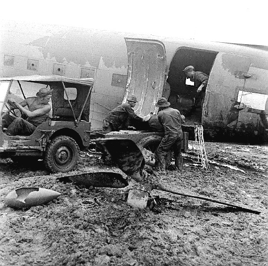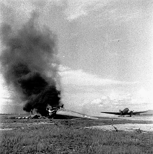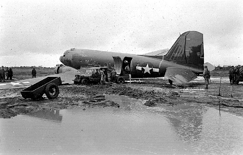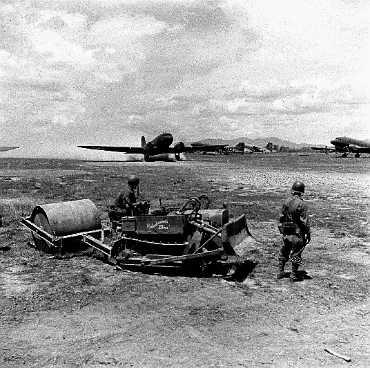 图像展示中美盟军于1944年5月17日拿下密支那西郊机场后的场景,无需添加文字赘言。