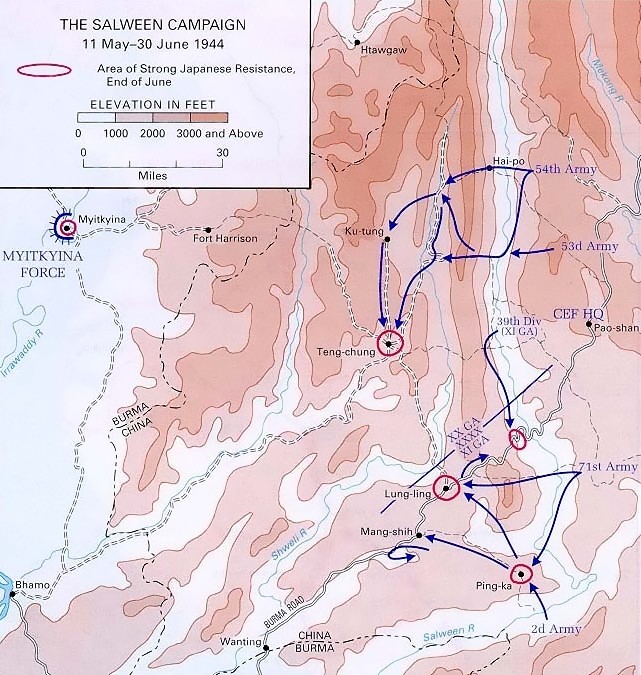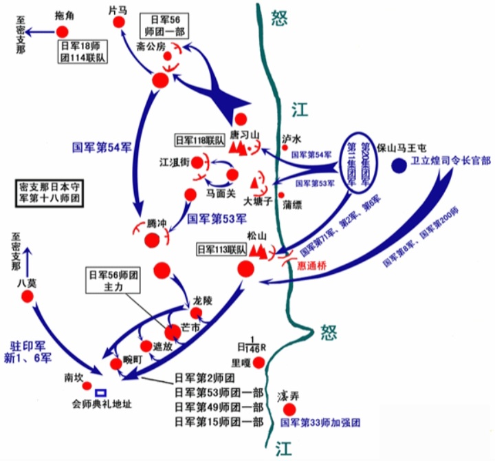 不久后,第11集团军(包括第2军、第6军、第71军)主力,也纷纷渡过怒江,发起松山- 龙陵方向的左翼攻势。