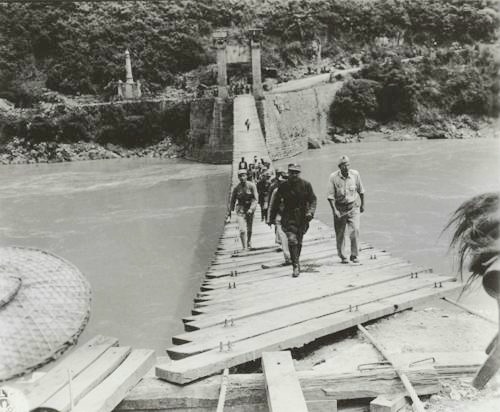 注 2 :始建成于1935年的惠通桥,位处云南怒江峡谷的滇缅公路段。当年是唯一仅有的汽车跨江钢索桥。滇缅公路也是抗战时期全国仅存能通达国际海港(仰光)的运输大动脉。