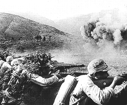7月23日,松山的天气转晴,14 AF 的飞机和远征军的炮兵,针对松山外围阵地的 “滚龙坡” 实施猛烈的轰击。蜂拥而上的远征军,开始用美援的火焰喷射器燃烧守军的前沿工事。