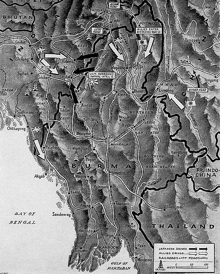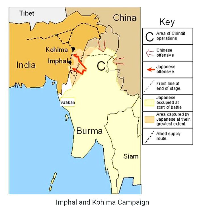 自1944年3月7日至8月16日,缅甸日军(也有少量反英的“印度国民军”参与其中)越境进犯印度东北部重镇英帕尔-科希马。这场以 “U Go 攻势 ”(“U Gō sakusen” 或 “ U Go Offensive” 或 “ Operation C ”)为代号、长达5个多月的攻势,由于后勤补给断绝而彻底溃败,期间日军伤亡6万余人,其中1.3万余阵亡(KIA)。伤亡主要归因营养不良、疾病折腾和体力透支。英印盟军则伤亡1.7万余人。