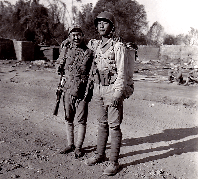 滇西缅北大反攻的胜利,荣誉归属中缅印战区(China-Burma-India Theoter,简称 “CBIT”)的盟军部队。故所以,在诸如密支那战役、龙陵战役、芒友会师等胜利庆功场合的升旗礼上,都可见“青天白日旗”与“星条旗”双双飘扬。